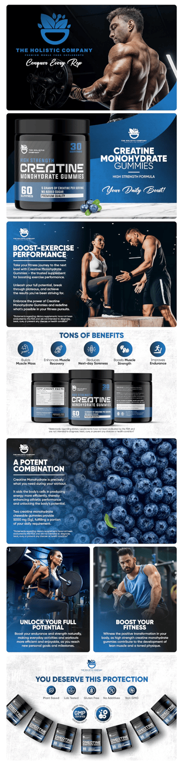 The objective was to create and implement compelling A+ Content for a newly launched dietary supplement. Since the product had limited creative assets, the challenge was to design visually persuasive and informative content that could both educate customers and drive conversions, while staying true to the brand’s identity.